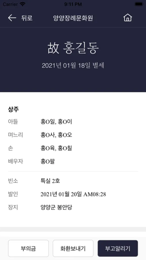 - 부의금 서비스 : 상주님들이 편하게 부의금을 받을 수 있는 서비스 제공