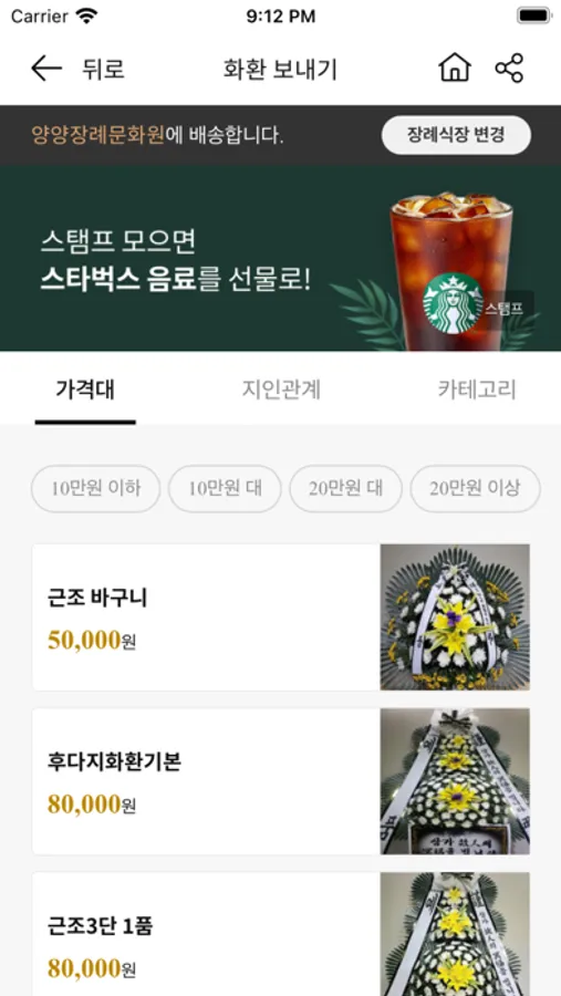 - 화환을 보내실 때마다 도장을 찍어드립니다! 스탬프 5개를 모으시면 스타벅스 커피를 보내드립니다!