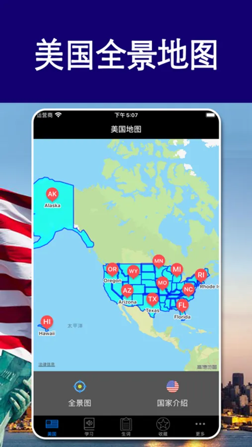 新增美国地图,让您更全面的了解美国的地理状况。在地图上列出了美国50个州和详细介绍,让您一目了然的看懂United States。