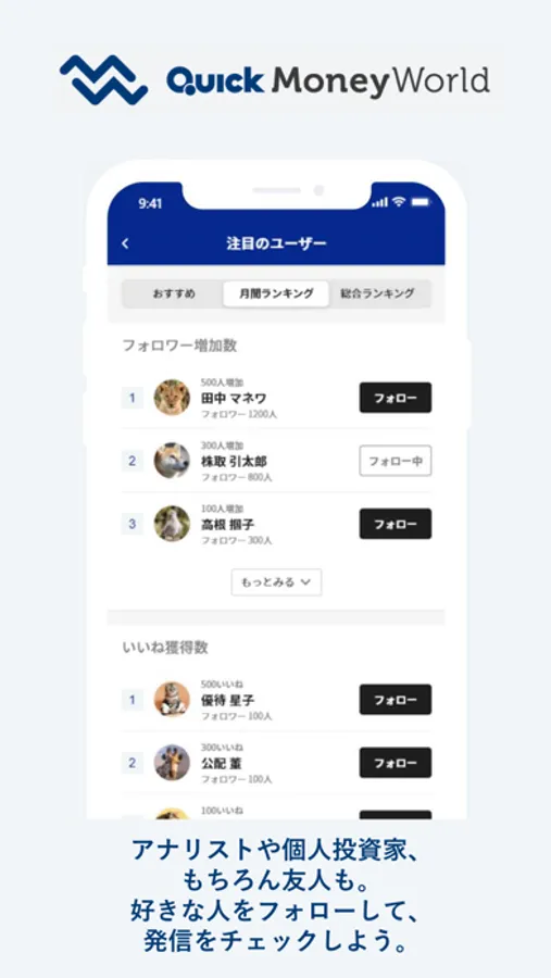 ・投資スタイルが似ているユーザーをフォローして、情報交換