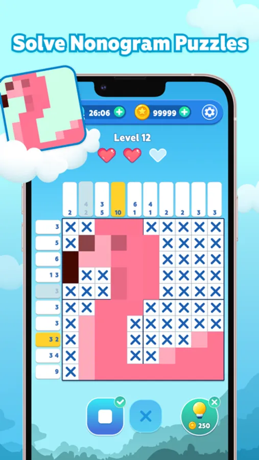 No matter you are a newbie or a master of logic puzzle games, you will definitely love this Nonogram. Follow simple rules and logics to reveal hidden pixel pics. All the mysteries are hidden in the numbers. When you solved the puzzles, you will get fabulous pixel arts. Take the challenge and become a Nonogram master!