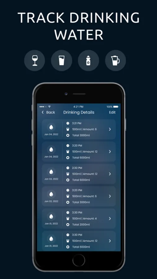- Water reminder to help you with the daily water drinking goal