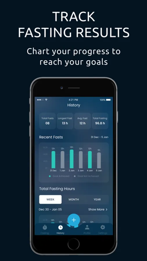 - View the history of your complete fasting period and drinking details