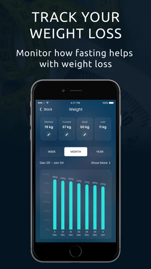 - Track details of your fasting, weight, and water intake