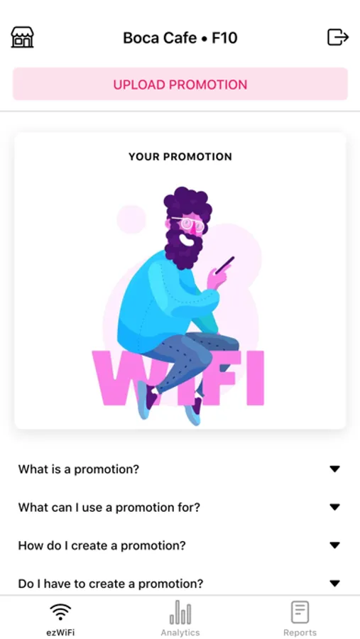 Access all your ezWiFi promotions, analytics and reports from your iPhone or iPad.