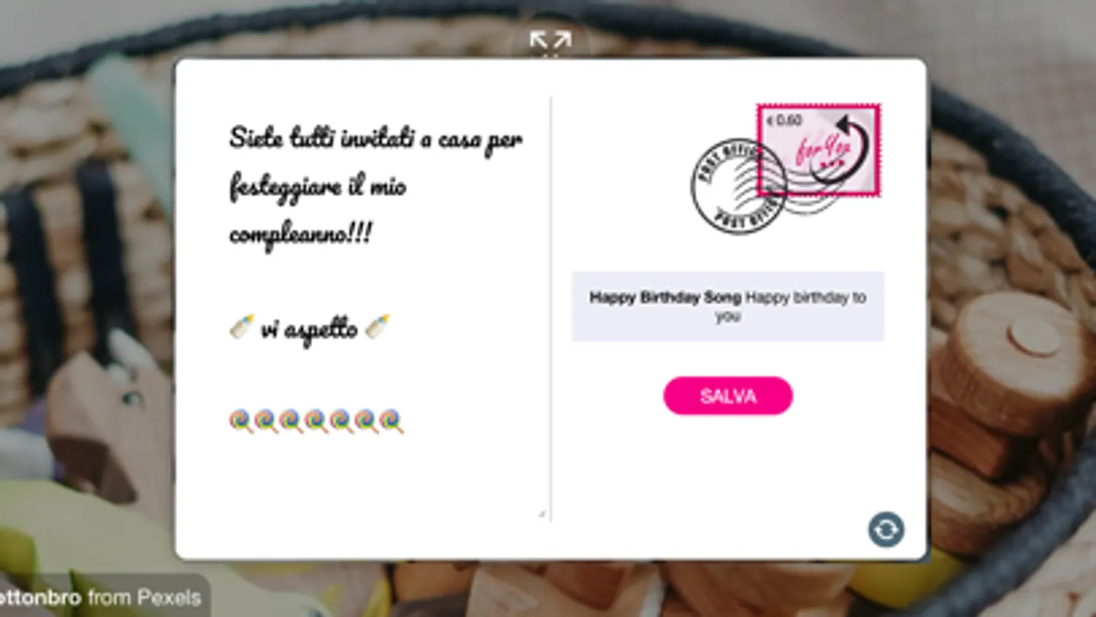 Scegli una foto per la cartolina, una per lo sfondo, cerca una canzone e scrivi un messaggio, sarà semplicissimo divertire i tuoi amici o emozionare il tuo partner!!!