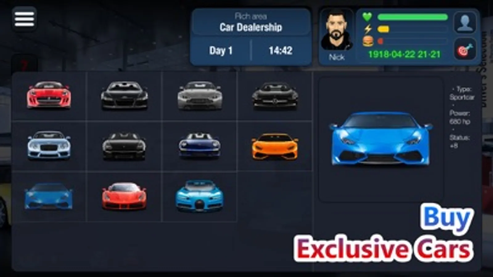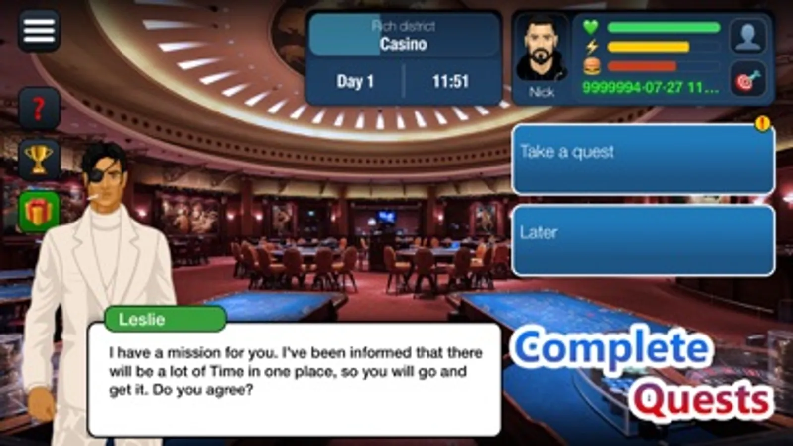 - Visit interesting places: restaurants, bars, cafes, casinos, car dealerships, banks, boutiques and many others...