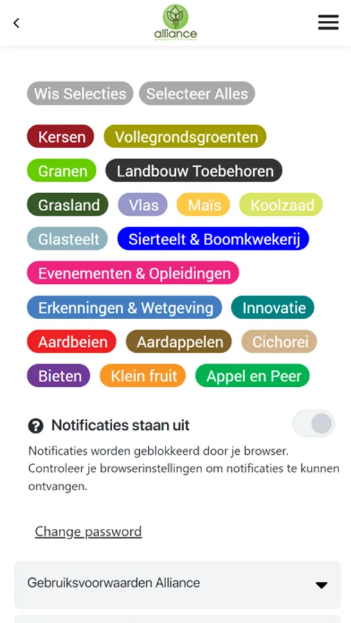 Heb steeds de laatste teeltinformatie op zak! Ontvang het laatste nieuws over zaden, gewasbescherming en bemesting voor teelten die voor u belangrijk zijn. Een onmisbare tool om samen u Alliance adviseur het meeste uit u bedrijf te halen.