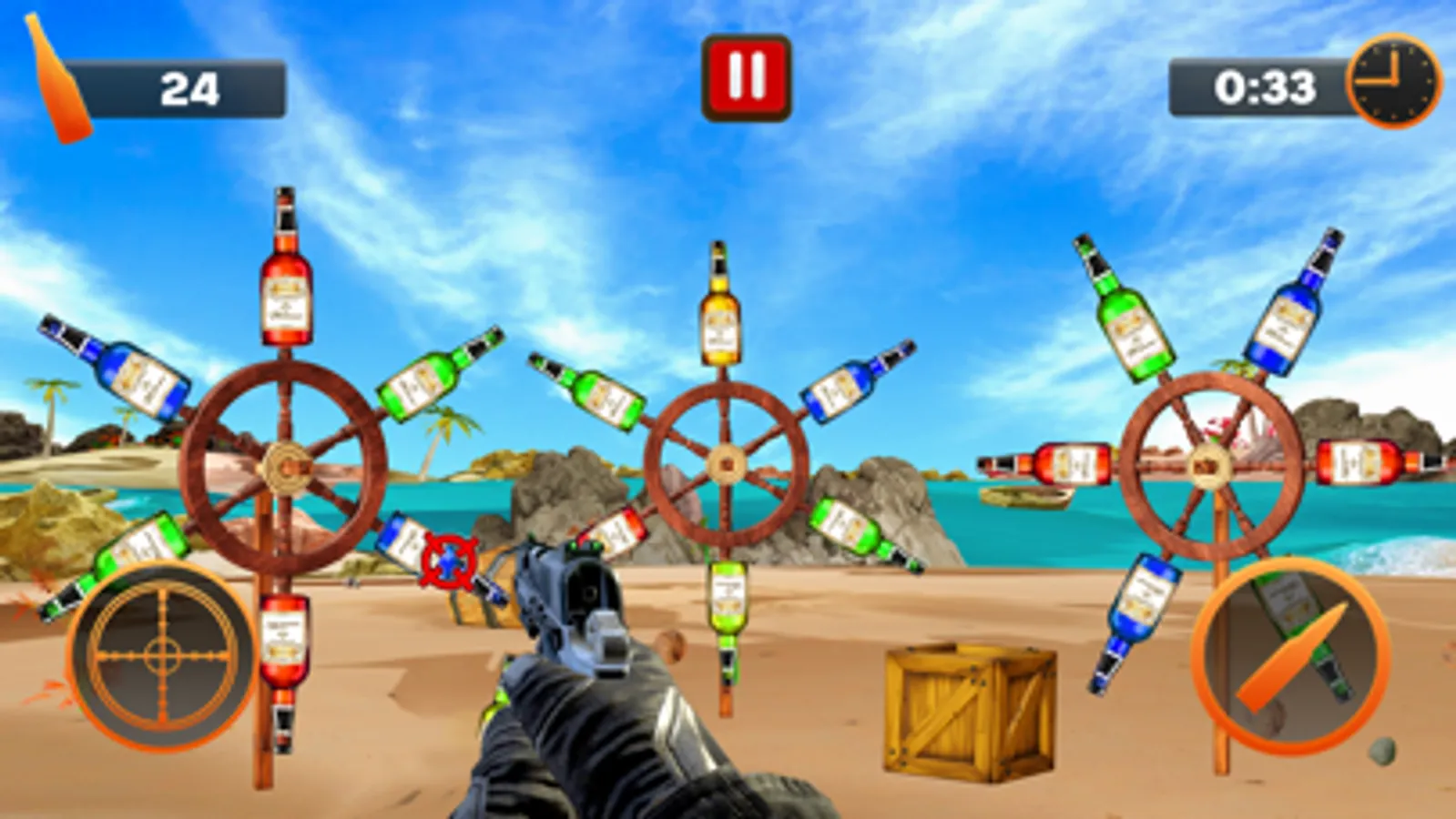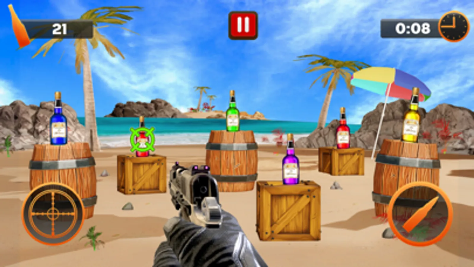 You can smash bottles in this bottle shoot simulator and real bottle shooting games. This bottle shoot game allows you to knock down bottles and smash bottles, and when bottles break, you earn points.
