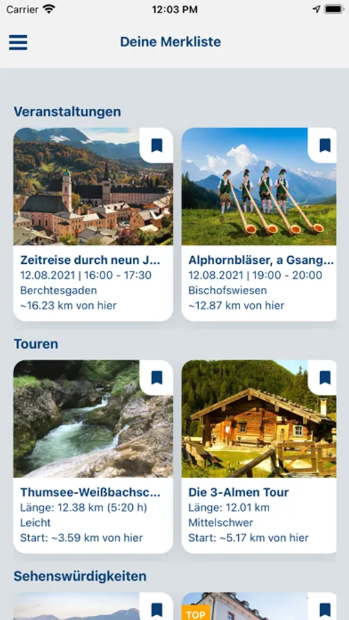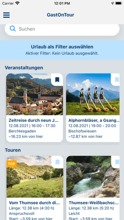 Ausflugsziele, Sehenswürdigkeiten, Wandertouren und Veranstaltungen in der Region werden entsprechend deiner Interessen und deines Aufenthalts bereitgestellt.