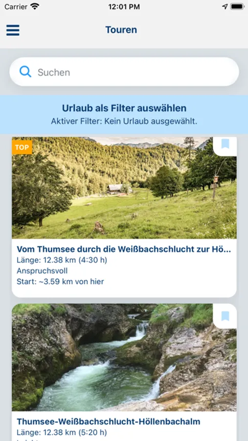 Pushnachrichten der umliegenden Tourist-Infos warnen dich vor Unwettern und gesperrten Wegen sowie überfüllten Parkplätzen und Ausflugszielen.