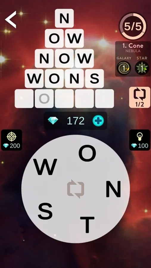 You will get a new letter at every step and you need to create another word from the letters you already have. Every step you completed will make the pyramid bigger