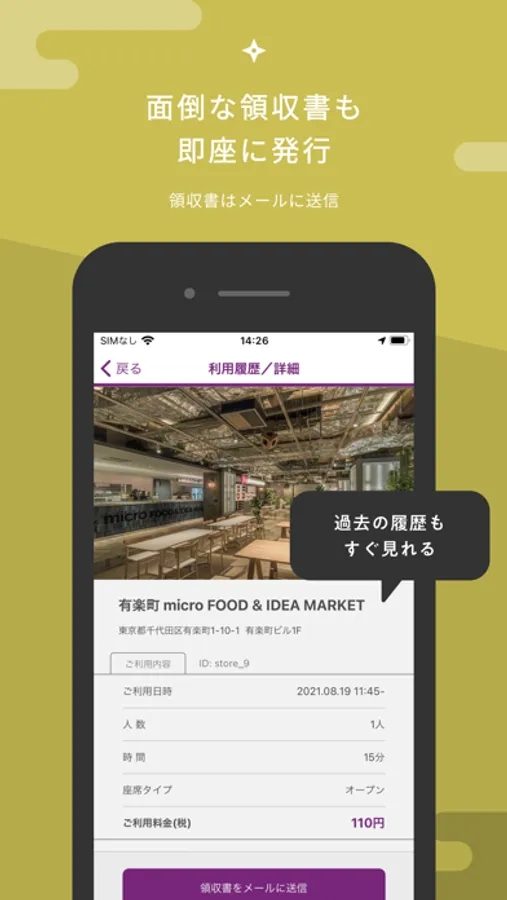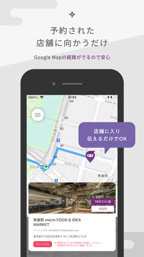 地図上からお近くのテレワークスポットを数タップで確保可能です。