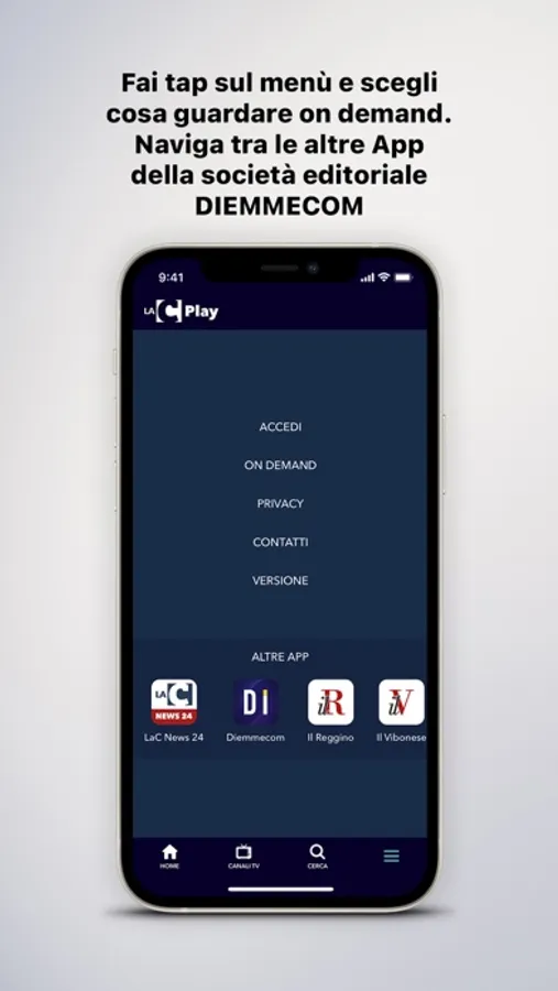 Con l’App LaC Play puoi guardare in qualsiasi momento e ovunque ti trovi i programmi di LaC Tv: informazione, talk show, intrattenimento, politica, docufilm, sport, salute, cultura e spettacolo.