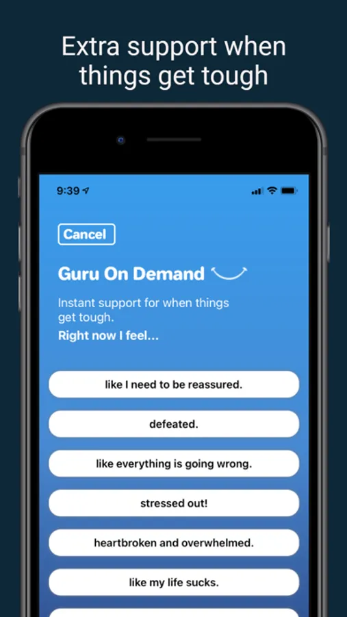 + Scroll through personalized messages of support instantly with Guru on Demand
