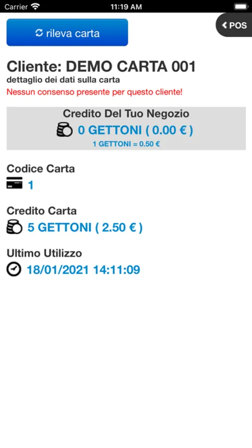 E' possibile in particolare caricare e scaricare gettoni al cliente.