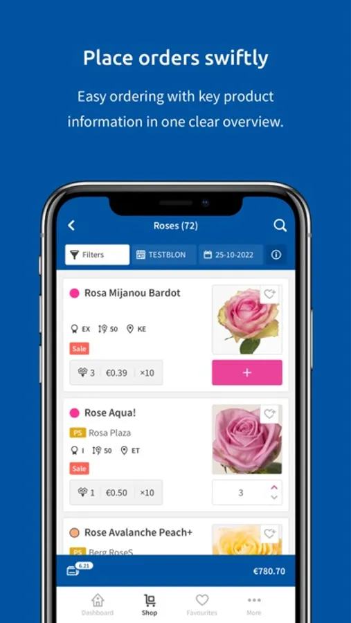 With the DGI app for phone as well as tablet, you always have direct access to a wide selection of daily fresh products. You can also view orders, top up or create new orders from any location: on the road, from your holiday destination, the shop, or from the comforts of your own home. The DGI app offers everything wholesale companies need for quick and easy stock management.
