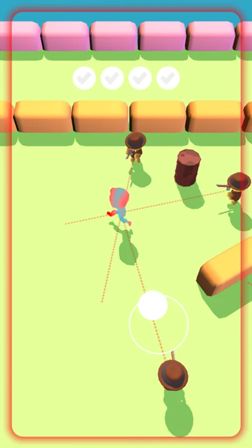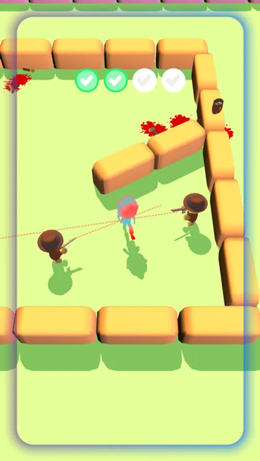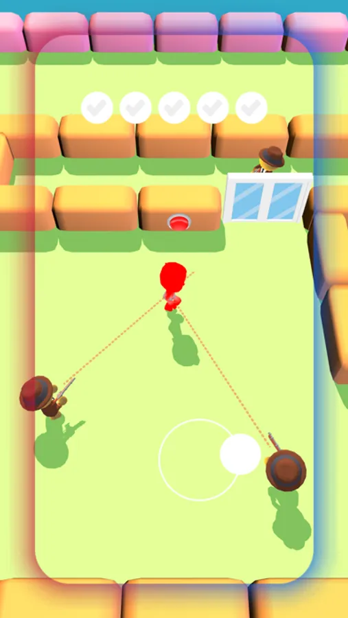 Tap and hold to be transparent. Use joystick to move around. You need to materialize to make enemies shoot, unless they can only see and track you. Solve puzzles, outsmart your enemies!