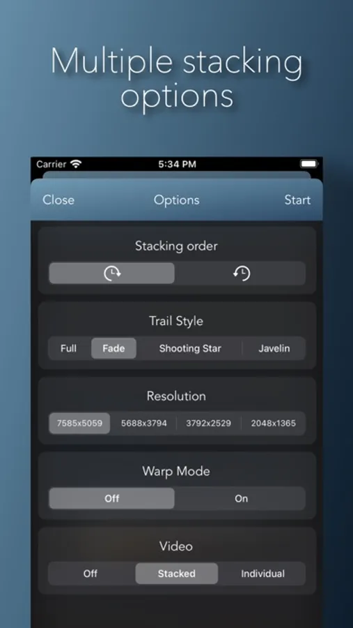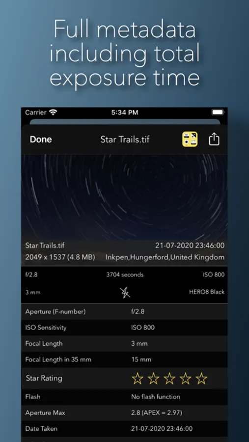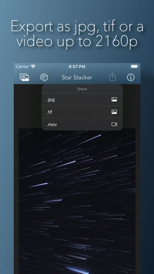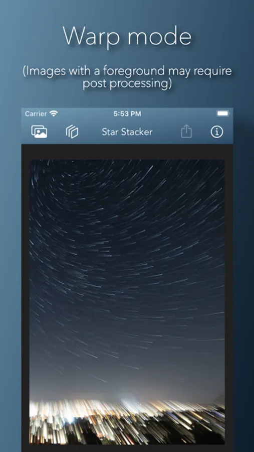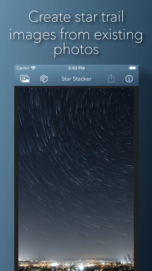 Star Stacker allows you to import a sequence of star photos taken throughout the night and turn them into star trail images or a time lapse video.