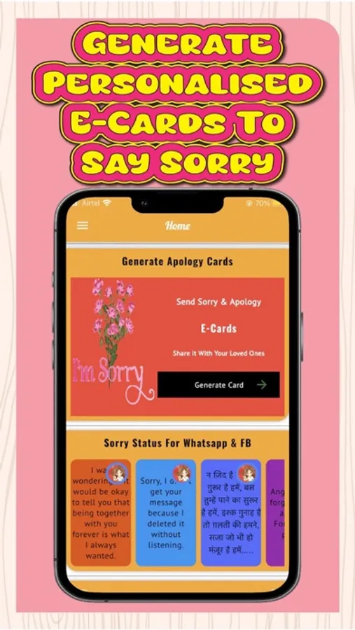 In today's digital age, communication has become faster and more convenient than ever before. However, sometimes we find ourselves at a loss for words when we need to apologize or express our remorse. The Sorry Messages App is designed to bridge that gap, providing a comprehensive collection of sorry messages, quotes, gifs, images, statuses for social media, personalized e-cards, and shayari in multiple languages. With its diverse range of features, this app is the ultimate companion for anyone seeking to apologize or reconcile with their loved ones.