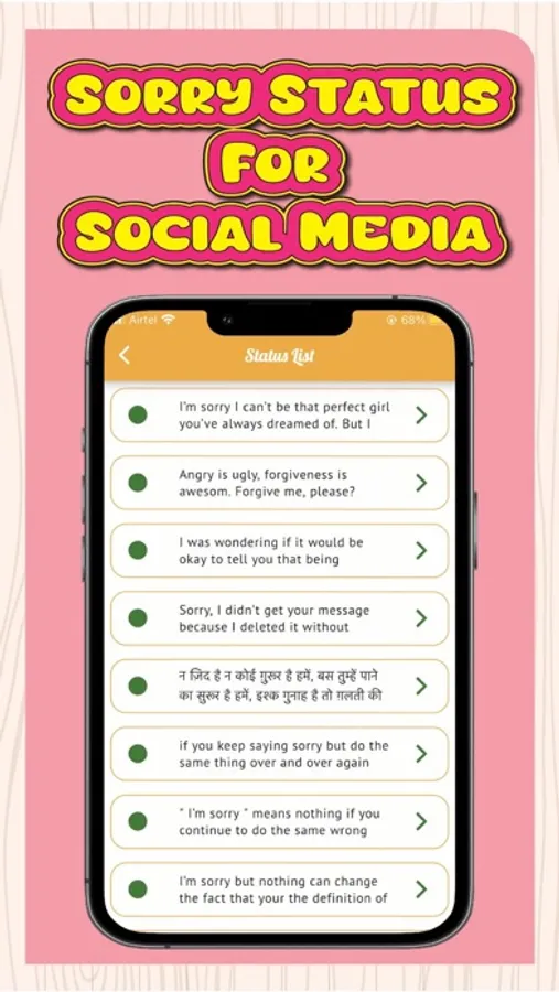 In the age of social media, sharing our thoughts and emotions has become an integral part of our daily lives. The Sorry Messages App acknowledges this trend by offering a selection of sorry statuses specifically designed for popular social media platforms like Facebook, Instagram, Twitter, and WhatsApp. Users can instantly update their status with a meaningful apology.