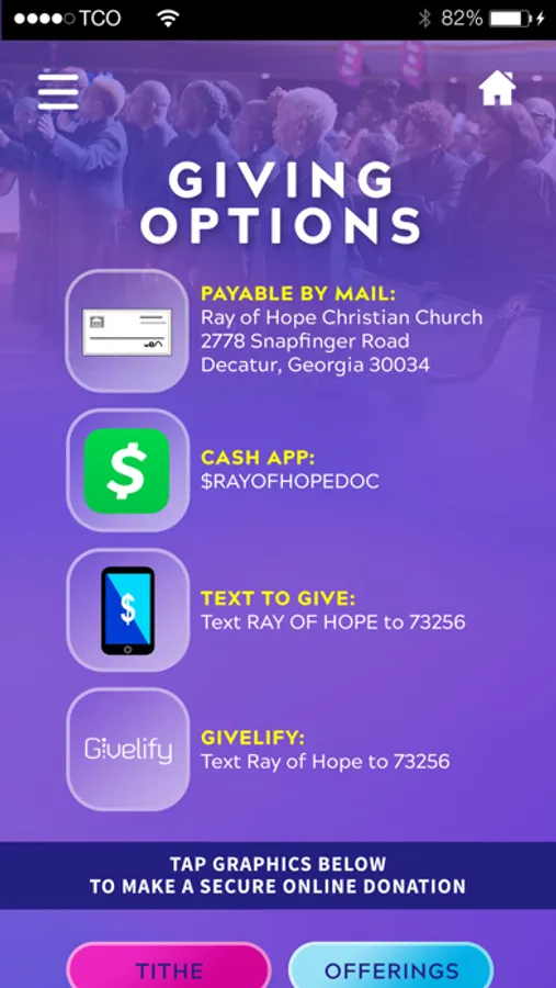 This is the official Ray of Hope Christian Church iPhone/iPad/iPod Touch Application. Download this FREE App today to connect with Ray of Hope Christian Church and experience our messages. Watch our services LIVE, listen to music and more. The Ray of Hope Christian Church App was created by The Church Online. of Hope Christian Church in 2778 Snapfinger Road Decatur, Georgia 30034