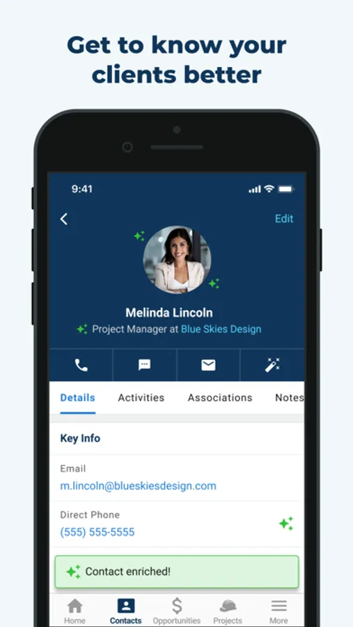 • Surface and link strategic insights, like LinkedIn profiles or Companies to a Contact.