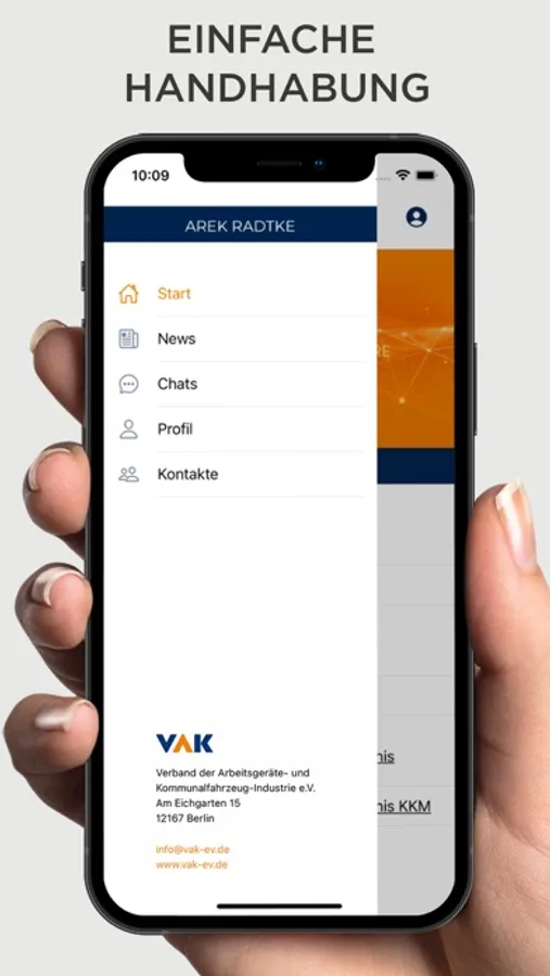 Der Verband VAK e.V. wollte neben den klassischen persönlichen Netzwerkmöglichkeiten auch eine Plattform schaffen, auf der sich schnell und direkt ausgetauscht werden kann. Somit gewährleisten wir eine noch höhere Zusammengehörigkeit und Bindung an das Verbandsnetzwerk. Gerade in der wachsenden Digitalisierung ist ein Mitgliederportal die erweiterte Chance sich untereinander auszutauschen. Mit dem Einverständnis der Nutzung der App und dem Freigeben der Kontaktdaten (jedes Mitglied kann eigenverantwortlich entscheiden, welche Daten freigegeben werden und an wen), kann zu dem bisherigen persönlichen Austausch ein digitaler Weg ergänzt werden. Das bedeutet in erster Linie, dass sich ehemalige Bekannte über einen neuen Messenger- Dienst und Informationskanal vernetzen können und aber auch neue Mitglieder sich in das Netzwerk schneller integrieren können und auch frühzeitiger an relevante Kontakte kommen. Damit entsteht ein persönliches VAK Adressbuch eines jeden einzelnen Nutzers.
