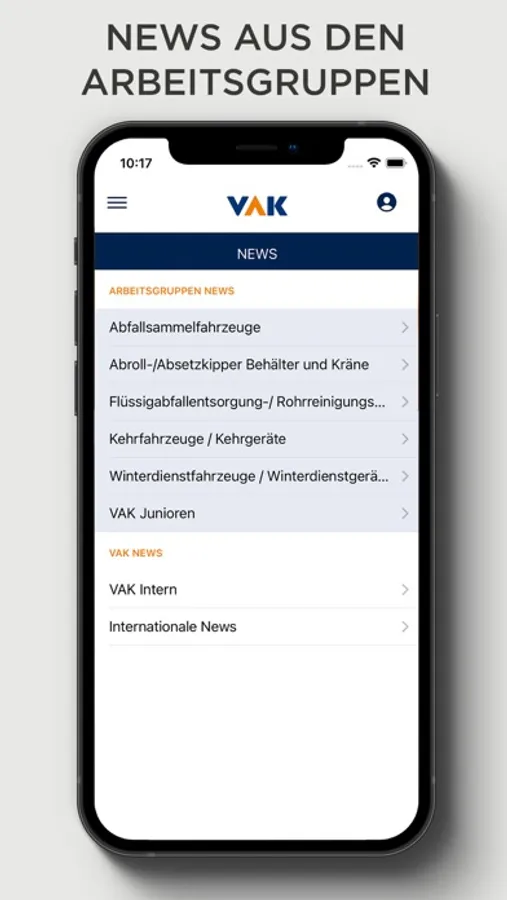 Die News-Feeds wiederum spiegeln einen klassischen Informationsdienst wider, bei dem jeder Nutzer frei entscheiden kann, welchem Feed er folgen und dementsprechend welche Informationen er erhalten möchte. Für beide Funktionen wird es eine Notification Funktion geben, die das stete Erinnern an „Neuigkeiten beim VAK“ auslöst und damit auf eine aktive Verbandsarbeit hinweist. Der Verband ist in fünf unterschiedliche Arbeitsgruppen aufgeteilt, in denen verschiedene Mitgliedsunternehmen organisiert sind. Damit schafft der Verband einen fokussierten und zielgerichteten Austausch zu branchenrelevanten Themen und kann diese auch klar untereinander abgrenzen. In der App soll sich diese Aufteilung und Ansprache an die Mitgliedsunternehmen ebenfalls wiederfinden. Dementsprechend wird es fünf News-Feeds geben, für jede Arbeitsgruppe einen Kanal. Damit verlängert sich die Kommunikation der Arbeitsgruppenvorsitzenden in die App und ermöglicht kurzfristiges Teilen von Informationen zu besprochenen Inhalten aus der letzten Sitzung. Die Idee der weiterführenden Nutzung, aktuell relevante News, die die gesamte Branche betreffen, aus dem eigenen Arbeitsalltag zu teilen, soll irgendwann von allen Teilnehmern der Feeds bzw. der Chatgruppen selbstständig gelebt werden. Sicherlich wird die Anerkennung dieser Funktion und die Erkenntnis des vorteilhaften Nutzens ein wenig Zeit in Anspruch nehmen. Ziel ist es, dass der Start durch die VAK Geschäftsstelle stark gefördert wird und sich dann aber ein eigenständig gelebtes System des Informationsaustausches einstellt.