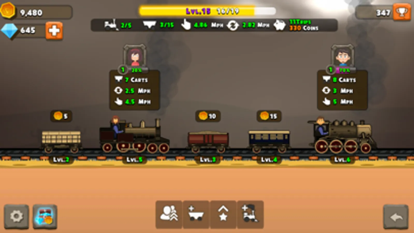 *Upgrade train engines from simple hand cars, steam engines to diesel engines!