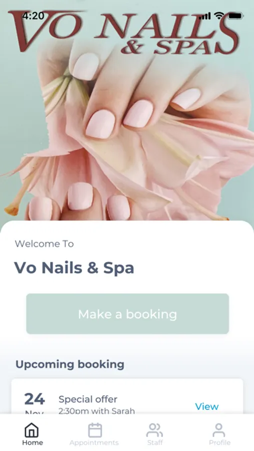 The Vo Nails & Spa app makes booking your appointments and managing your loyalty points even easier. You're just a few taps away from feeling good and looking great!