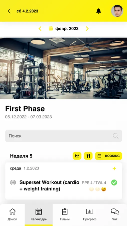 Индивидуальные план тренировок (после подробного анкетирования) в тренажерном зале и дома + план питания в Вашем смартфоне.