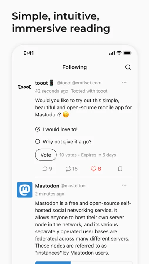 tooot is an open source, simple yet elegant Mastodon mobile client. A Mastodon (https://joinmastodon.org/) account is required to use this app.