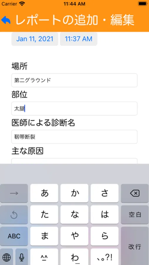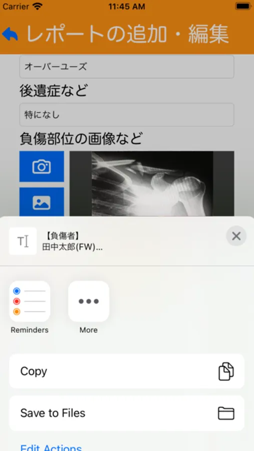 ・レポートを作成するときに、画像をカメラでの撮影/フォトライブラリからの添付もできます