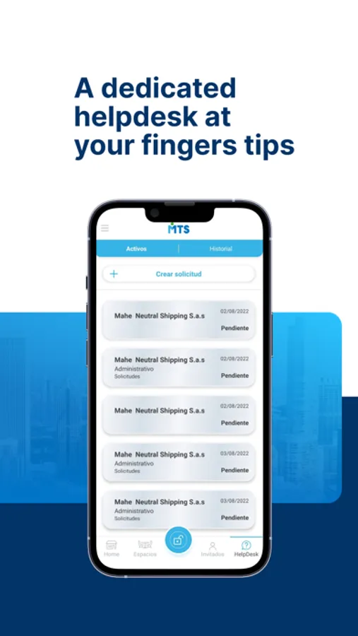 App MTS está disponible para toda nuestra comunidad de forma gratuita y segura, a través de esta puedes hacer uso de los servicios especializados que te ofrecemos, realizar todas tus solicitudes, reserva de los espacios y oficinas y registrar tus invitados de forma anticipada.
