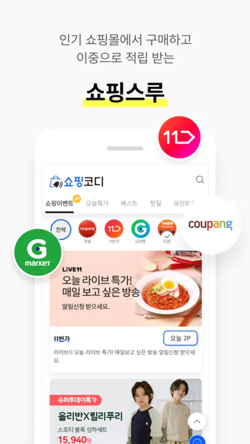 특가/할인 정보를 찾기 위해 여러 쇼핑앱을 돌아보지 않아도 쇼핑코디