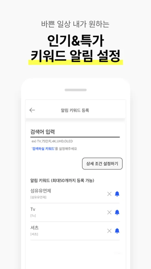 -키워드 알림 설정 : 찾는 상품이 업데이트되면 바로 알림! 키워드를 설정해 보세요.