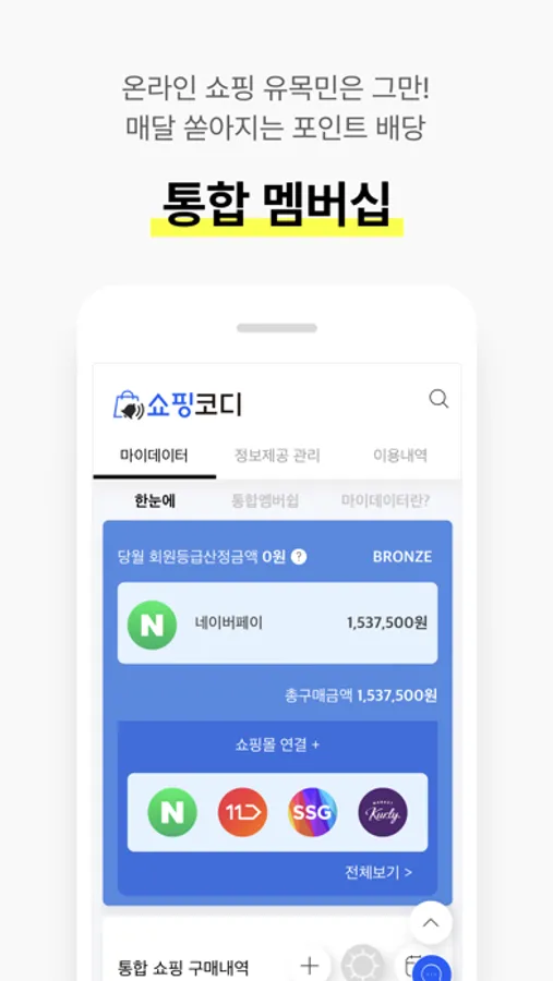 -통합 멤버십 : 흩어진 내 쇼핑정보 모아 멤버십까지 통합! 포인트도 추가로 적립하세요.