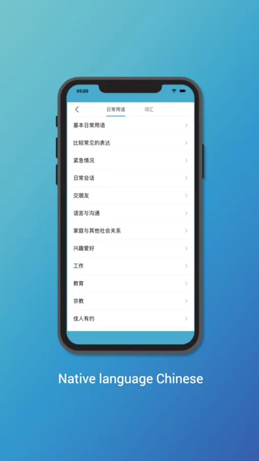 The built-in phrase manual contains more than 2500 daily English phrases, divided into 60 daily topics. The vocabulary is expanded to 3,500 basic English words, organized into word lists according to topics.