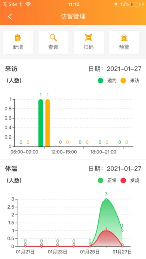 一款智能访客管理系统APP,提供全面的访客登记,功能包括新增,查询,预警等全方面功能等