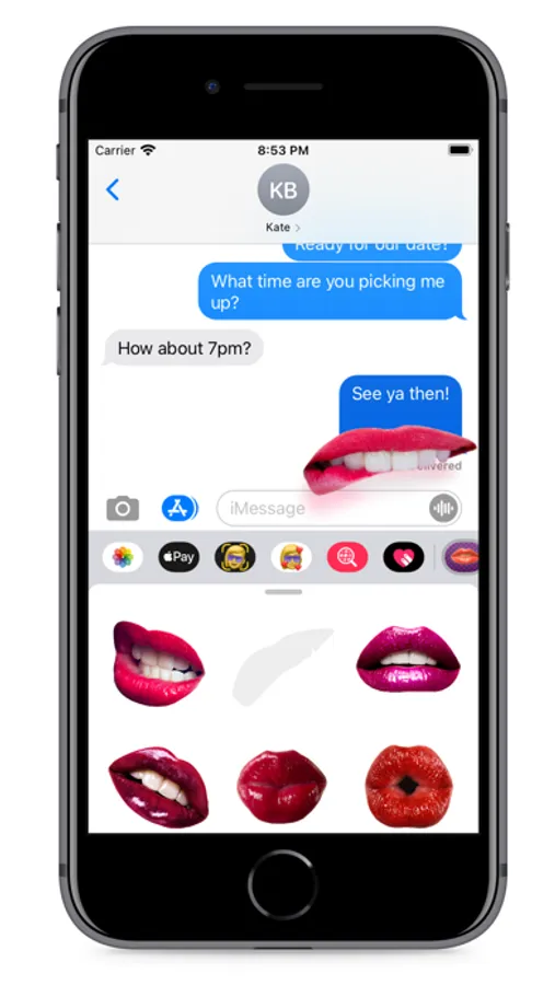 Want to tell that special someone how you feel? Getting ready for that hot date? Set the mood with these flirtatious lips stickers! Great for Valentine's Day too! Send kisses! Send hints! Say it with a sticker!