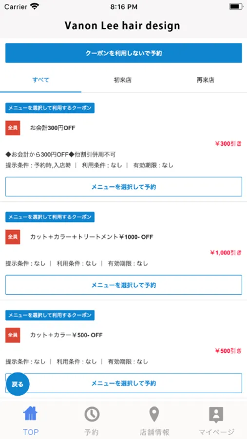 お得なクーポンが配信されます。ネット予約時にクーポン利用での予約も可能なので来店時もスムーズに施術頂けます。