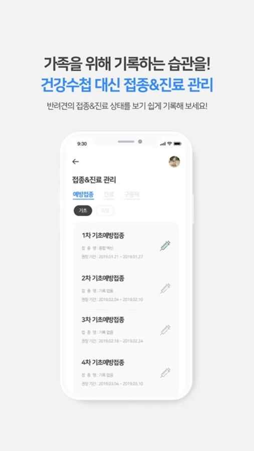진료&접종 관리 : 우리 아이가 살아가면서, "어떠한 접종"을 받아야 하는지, "어떤 진료"를 받았는지지 "한 눈에" 알려드립니다.