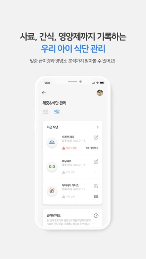 식단 괸리 : 식단 기록을 통해 우리 아이가 "얼만큼" 먹어야 하는지 상세히 알려드립니다.