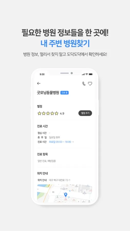 가까운 기준, 별점 높은 순 등 다양한 기준으로 우리 아이를 믿고 맡길 수 있는 동물병원을 소개해드립니다.