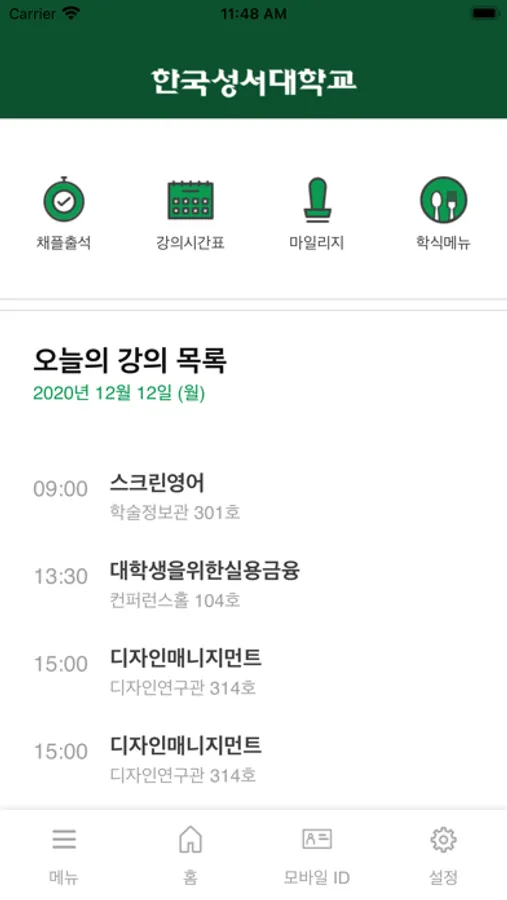 개인정보, 시간표, 이수학점, 등록금납부 현황, 사물함정보, 식단 등