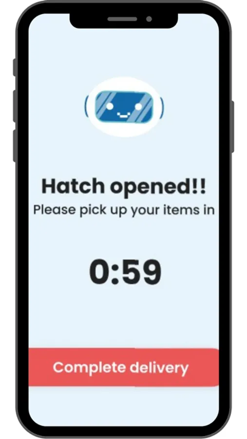 Users have to download the app to collect/use the Camello. For example, a defined QR code will be issued to be scanned using the app for the robot compartment to open and users to collect their parcel.