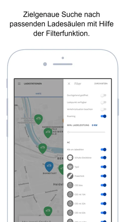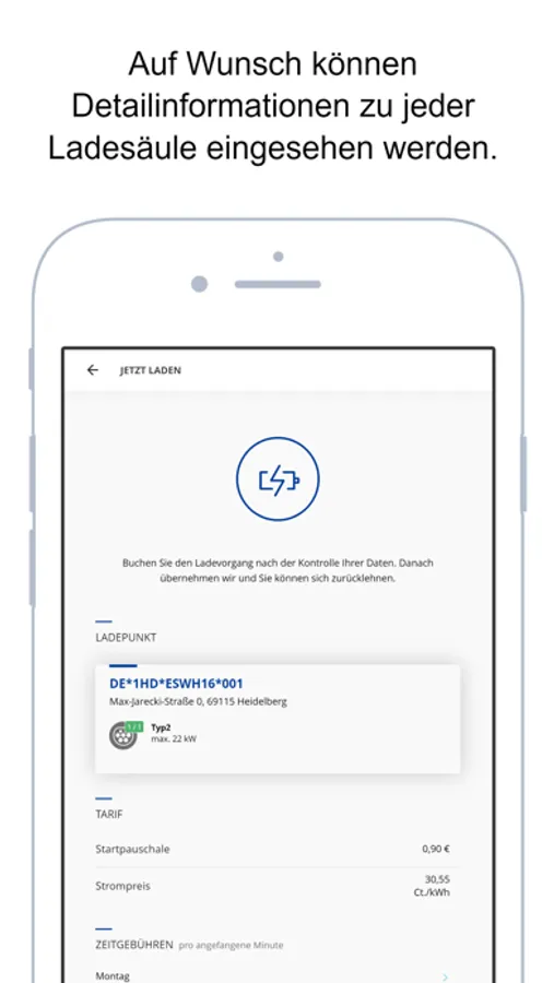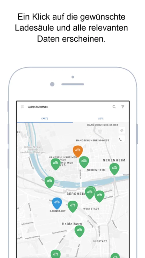 Mit heidelberg EMOBIL geht laden nun ganz einfach. In der Übersichtskarte finden Sie alle Ladestationen der Stadtwerke Heidelberg inklusive Verfügbarkeit und Navigation. Sie können ganz einfach in der App Ihre gewünschte Ladestation freischalten, E-Auto laden und anschließend mithilfe des hinterlegten Bankkontos bezahlen. Die entstandenen Kosten werden per Lastschrift abgebucht.