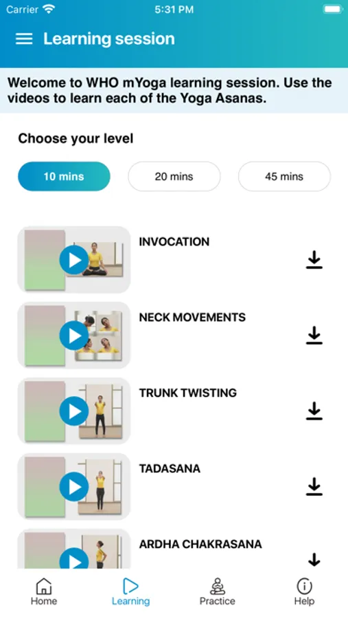 WHO launched its global Traditional Medicine Strategy 2014–2023 to strengthen the quality, safety and effectiveness of Traditional and Complementary Medicine. With support from the Ministry of Ayurveda, Yoga & Naturopathy, Unani, Siddha and Homoeopathy (Ministry of AYUSH), Government of India, WHO has developed the mYoga app to support the implementation of the strategy and encourage people to practice Yoga at the touch of their smartphone screen.