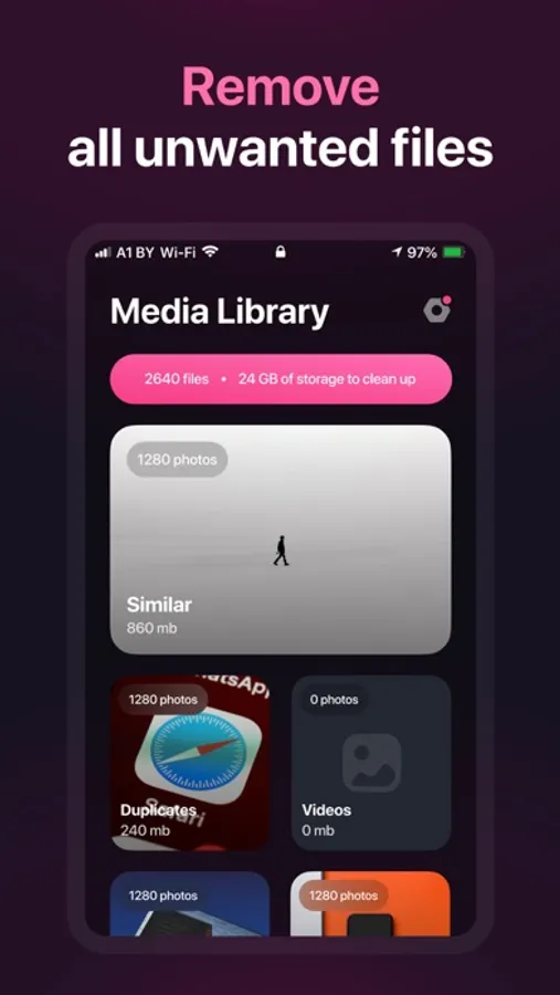 Junk Cleaner helps you to free up your photo gallery from all unwanted photos AUTOMATICALLY.